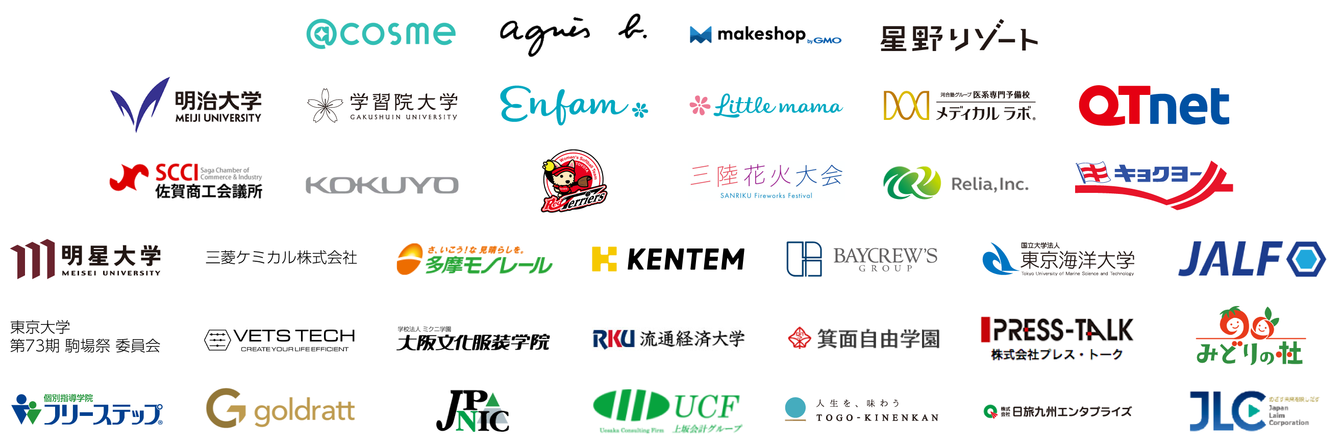 企業、自治体、大学、代理店、商社、旅客業、不動産、社会福祉協議会、各種組合など幅広い業種の皆さまにご利用いただいています